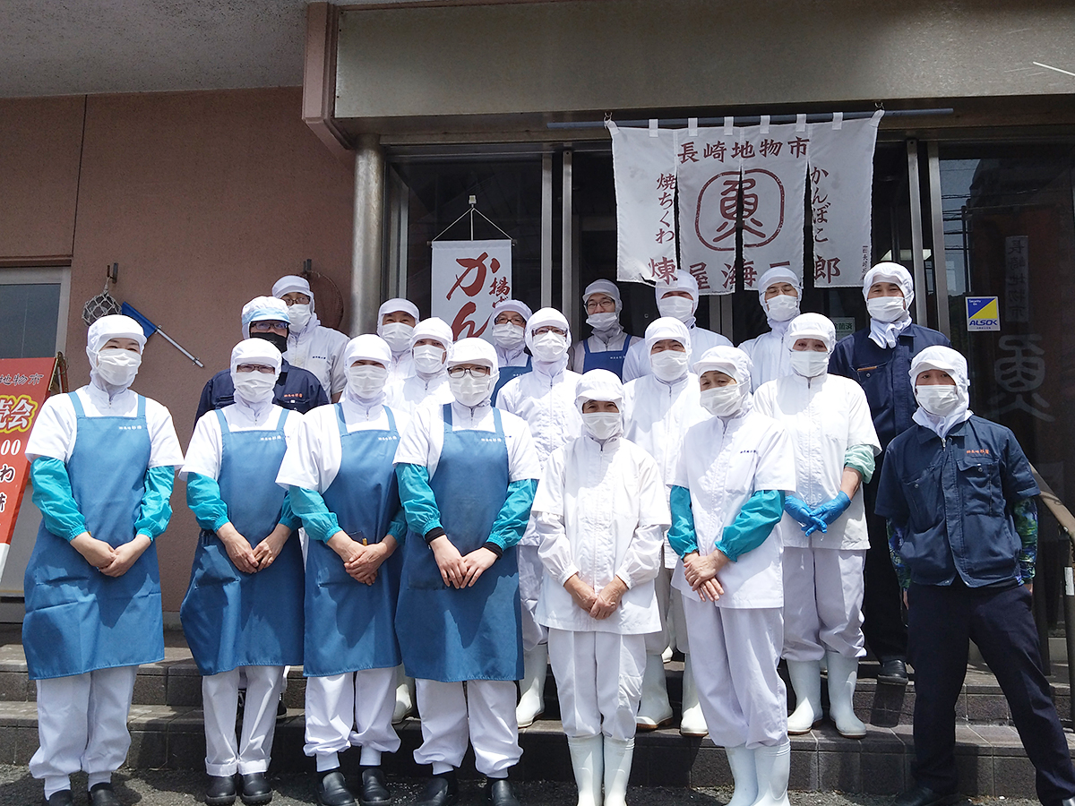水産県長崎に位置する当社は、恵まれた地の利を生かし、近海産の新鮮な魚を原料に、昔ながらのすり鉢仕込み製法で、最新の設備を取り入れながら、丹精込めて、一つ一つ職人が造り上げております。つねに当社は、鮮を生かした長崎ならではの歯ごたえと風味を大切に守りながら、自信をもってお届けしています。
